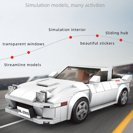 The Mould King® RX-7 FC35 model car is created with 369 pieces and 2.0 inch height, 6.5 inch length and 2.8 inch width. The car model has a steering wheel, a streamlined body, a transparent and environmentally friendly windshield, a large rear wing and sliding tires.The 369 pieces blocks are packaged in...